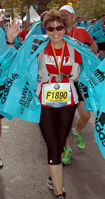 Im Internet stoße ich auf die „Running Company“ melde mich gleich für den nächsten START Running Einsteiger-Laufkurs an und ab 11.6.2012 >Start running and never stop< mit Bibi, jeden Montag und Donnerstag. Noch im August 2012 ging es weiter bei Running Company mit dem Lauftraining am Mittwochabend – START Running+ Lauftreff. Und am 14. Oktober 2012 mache ich den ersten Wettkampf und nehme beim München Marathon am 10 km-Lauf mit einer für mich fantastischen Zeit von 57:31 min. teil.Heute bin ich immer noch bei Running Company jeden Mittwoch oder Sonntag mit dabei und privat jeden Montag mit meinen gemeinsamen Lauffreunden aus unserem START Running Einsteiger-Laufkurs unterwegs.